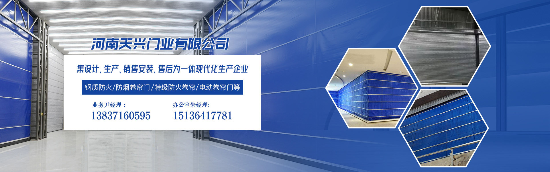 河南天興門業(yè)有限公司經(jīng)過(guò)多年的創(chuàng)新發(fā)展,已成為河南省集設(shè)計(jì)、生產(chǎn)、銷售安裝、售后為一體現(xiàn)代化生產(chǎn)企業(yè)。公司位于鄭州市西南鄭堯高速軒轅丘出口西 500 米處,緊鄰 S102 省道。公司主要生產(chǎn):【鋼質(zhì)防火、防煙卷簾門】【特級(jí)防火卷簾】【無(wú)機(jī)布折疊提升門】【快速卷簾門】【電動(dòng)卷簾門】【防火門】【防火窗】【擋煙垂壁】等。廣泛...